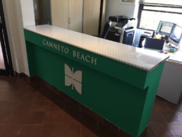 ClienteCanneto BeachLavoro• Insegna intaglio 3d forex su base legno con lavorazione effetto destroyed, rivestimento reception con logo 3d e scrivanie studioData2015Linkwww.facebook.com