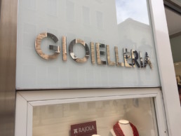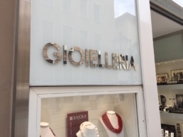 ClienteGioielleria LucaselliLavoroBrand Name • Insegna intaglio 3d alluminio cromo specchio e applicazione su vetroData2016