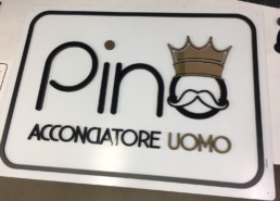 ClientePino Hair StylistLavoroInsegna intaglio 3d forex su base alluminio bianco e alluminio cromo specchio oro di finitura. Plexiglass trasparente di protezione .Data2016Linkwww.facebook.com