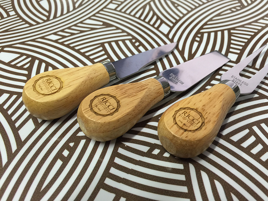 I nostri clienti ci permettono quotidianamente di personalizzare accessori per innumerevoli settori. Ad esempio, per il settore food personalizziamo taglieri in legno, accessori in cuoio, menù, attrezzi da cucina, case per vino e bicchieri in vetro.